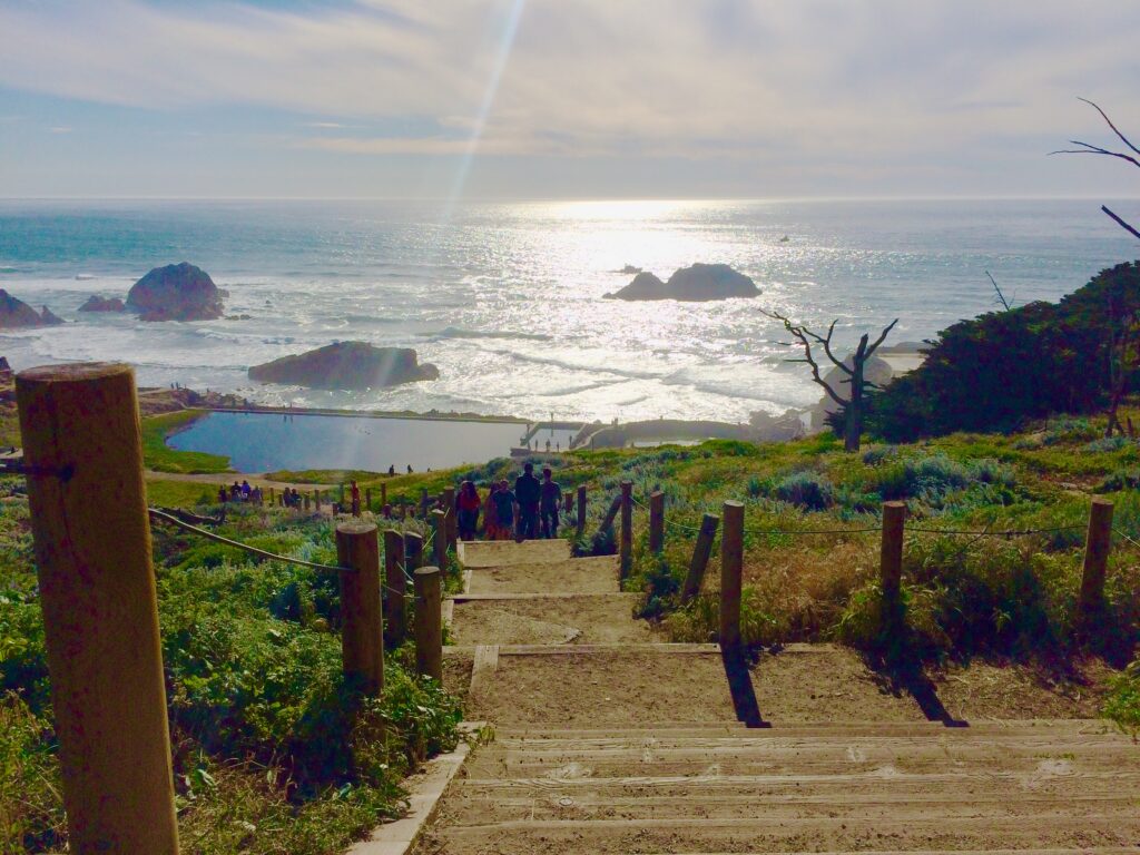 I eventually get to what I think of as the center, and I stand there for a few moments, taking in the surroundings. I see the ocean, the distant land, the trees, the blue sky, the clouds. The Golden Gate Bridge beckons in the distance. It’s all so very beautiful.