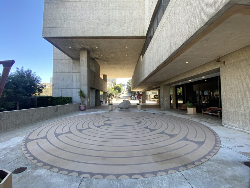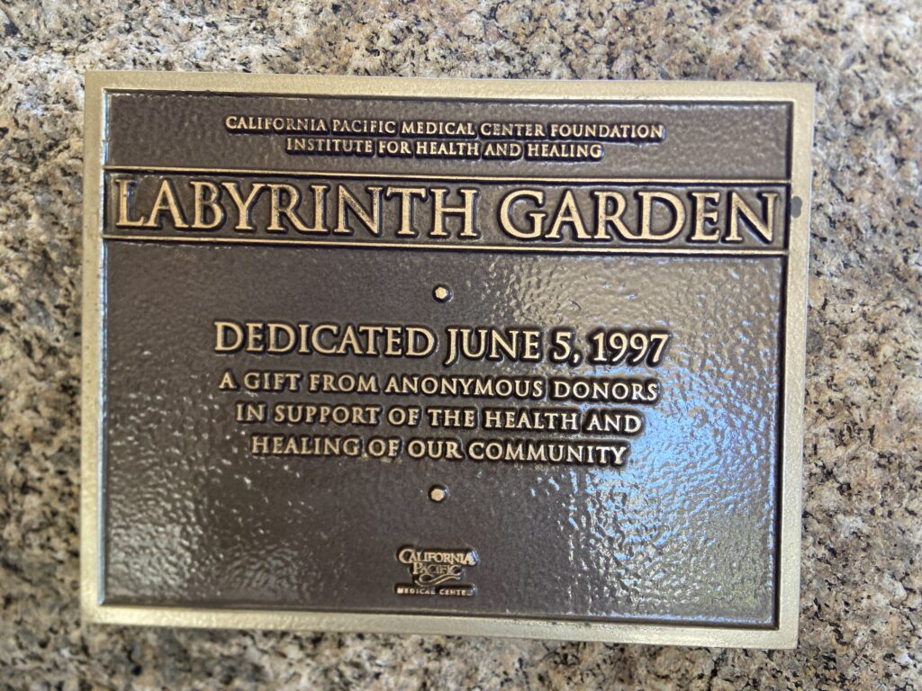 Somewhat hidden past the entrance to the California Pacific Medical Center lives a lovely outdoor labyrinth. Set back from the street and away from the entrance, the labyrinth is well situated for an undisturbed meditative walk.