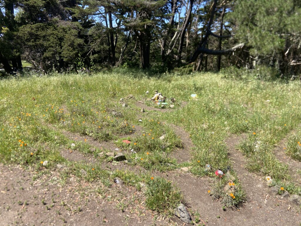 Basically it’s just a dirt path barely delineated with some rocks, with weeds and detritus all around it. Random toys and objects are strewn about.